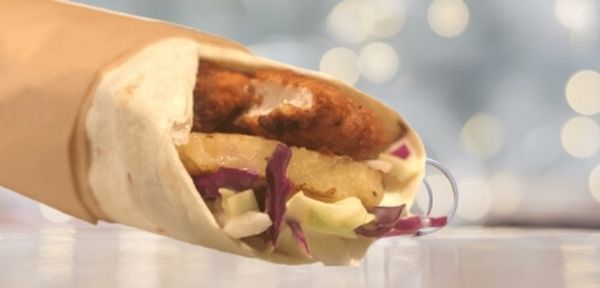Crispy or Grilled Chicken Breast, Coleslaw, Pineapple, Red Onions, Aioli on Tortilla Wrap