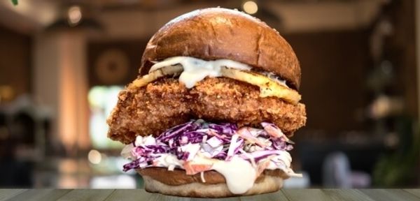 Crispy or Grilled Chicken, Red Onions, Coleslaw, Grilled Pineapple and Aioli Sauce