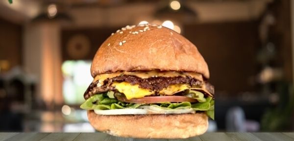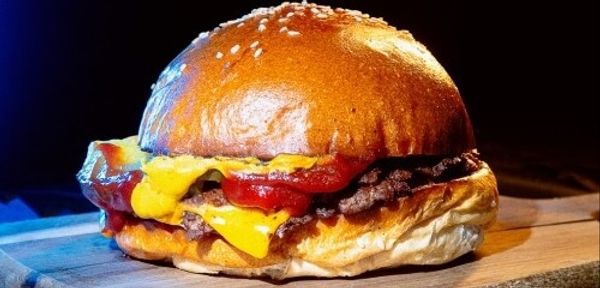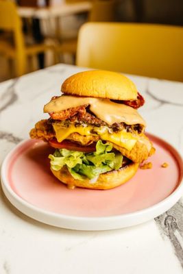 2x 130 g. Smashed Beef Patties, Double Cheese, Bacon, Fresh Onions, and Special Sauce