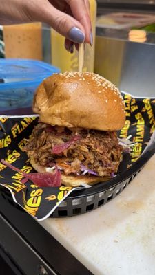 Pulled pork, Cheese, Cherry BBQ Sauce, Pickled Onions, Chipotle Mayo