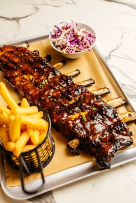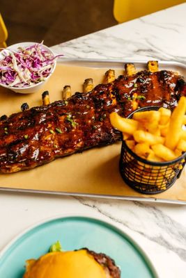 Any Burger from Classic range, Half Rack of Pork Ribs and Chips