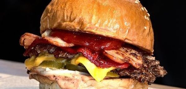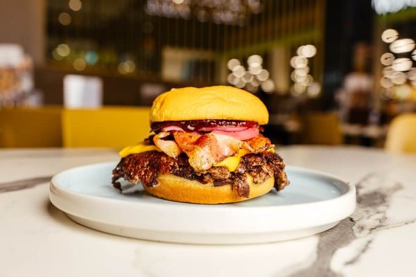 130 g. Smash Patty, Cheese, Bacon, Pickled Onions, Cherry BBQ Sauce