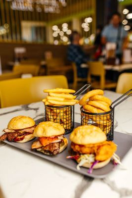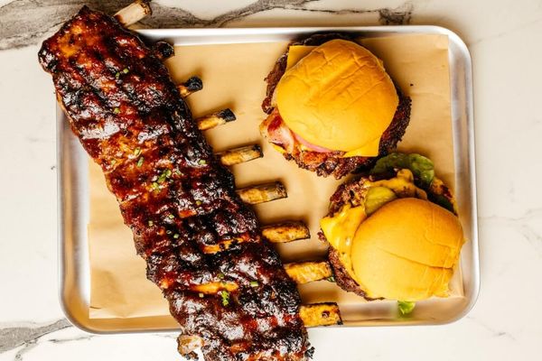 Any two Burgers from classic range and Full Rack of Pork Ribs.