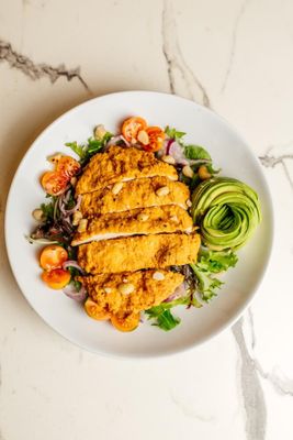 Crispy or Grilled Chicken, Avocado, with Lettuce, Tomato, Onions, Macadamia with Italian Dressing