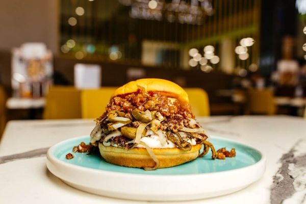 130 g. Smash Patty, Cheese, Bacon, Capsicum, Jalapenos, Fresh Onions, House Chilli and Chipotle Sauce