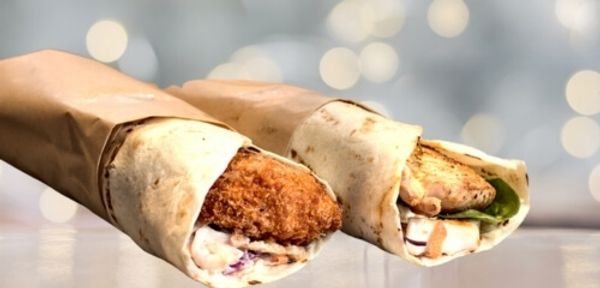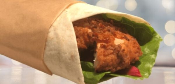 Crispy or Grilled Chicken Breast, Grilled Capsicum, Lettuce, Red Onions, Chipotle Sauce on Tortilla Wrap