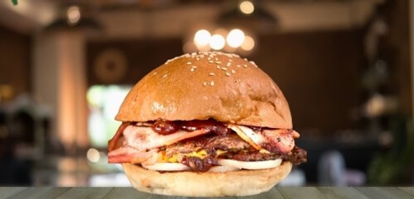 130 g. Smash Patty, Cheese, Fried Egg, Beetroot, Tomato Slice, Fresh Onions, Ketchup and Mustard