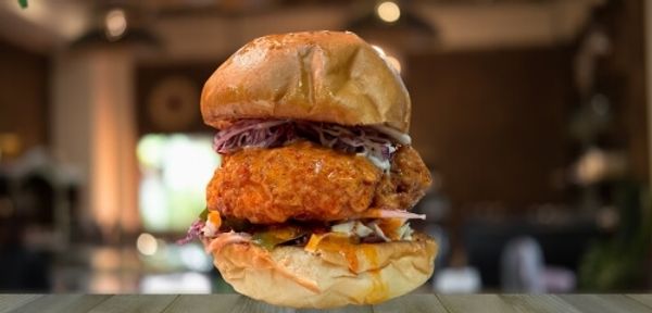 Nashville Style Chicken, Coleslaw, Sweet Spiced Pickles, Sriracha Sauce and Ranch Sauce
