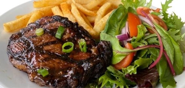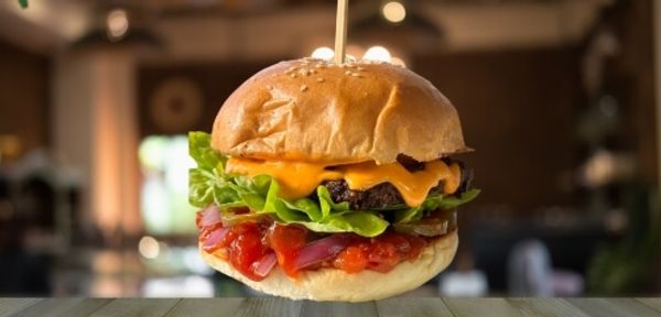 150 Gram Steak, Lettuce, Red Onions, Tomato Slice, Cheese, Fried Egg, Herb Mayo and Tomato Relish