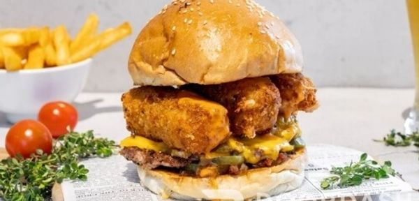 130 g. Smash Patty, Double Cheese, Chicken Breast, Bacon, Fresh Onions, Tomato Slice, Lettuce and Special Sauce