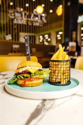 130 g. Smash Patty, Cheese, Lettuce, Tomato Slice, Fresh Onions, Pickles and Special Sauce